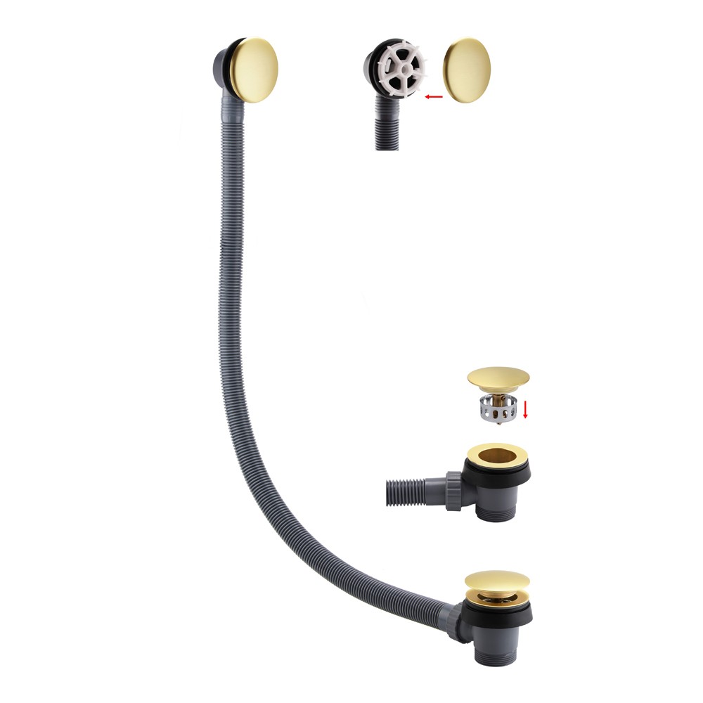 Brushed Brass Easy Clean Bath Sprung Waste & Overflow - 90cm