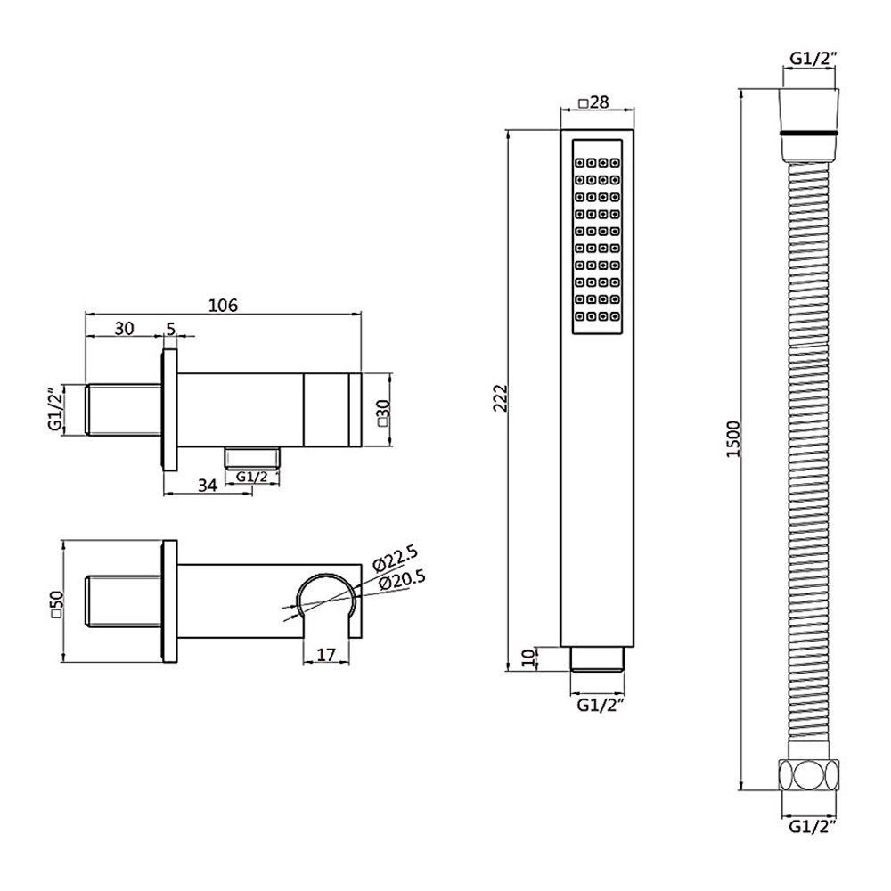 • Shower handset type: Brass
