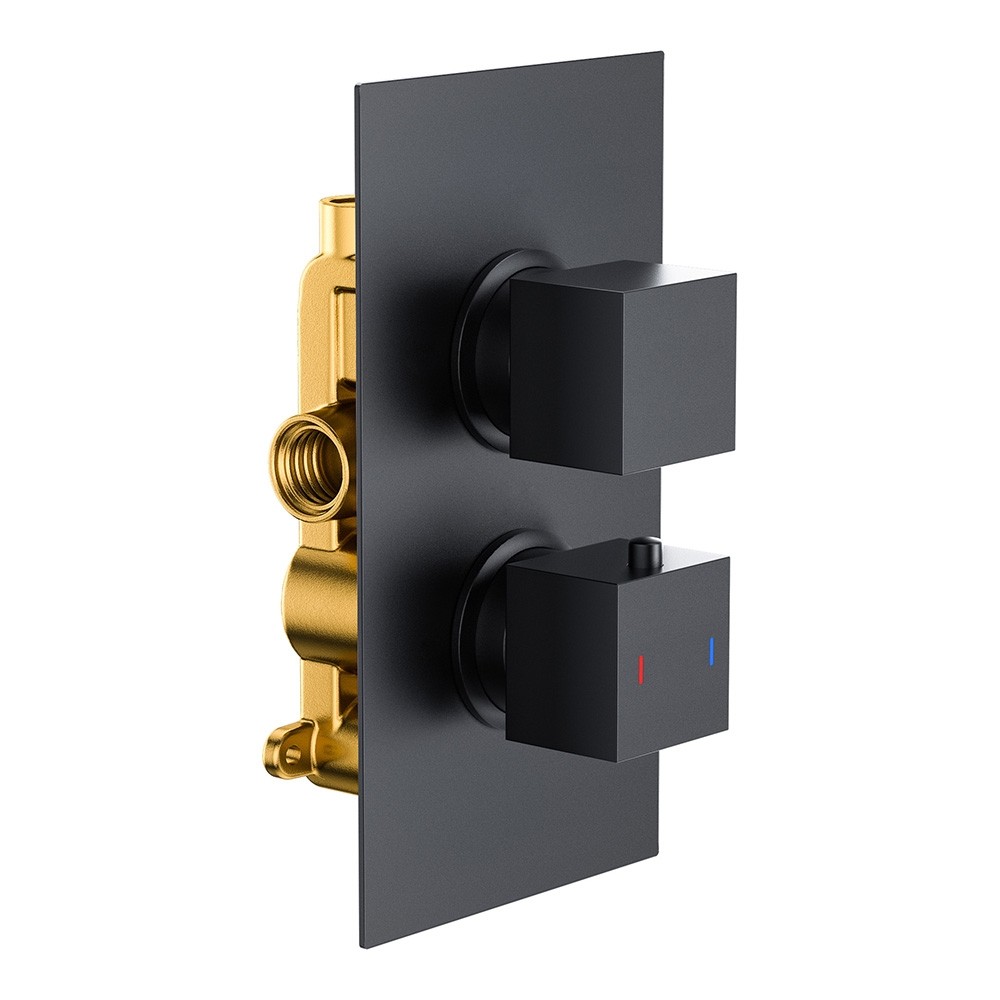 Dual Control Matt Black Square Concealed Thermostatic Shower Mixer Valve with Ceiling Mounted Shower Head - 1 Outlet