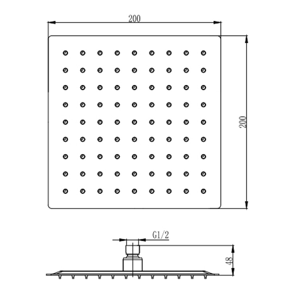 • Shower head dimensions: 200 x 200mm