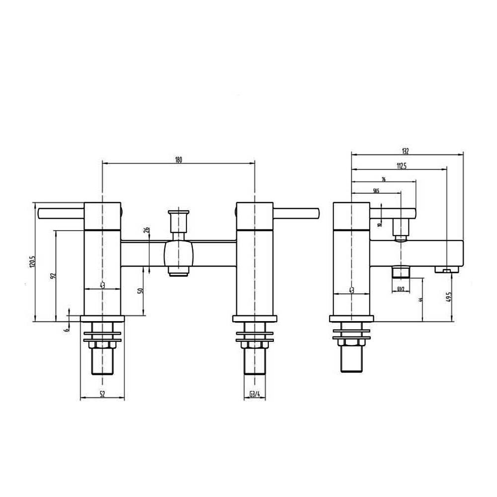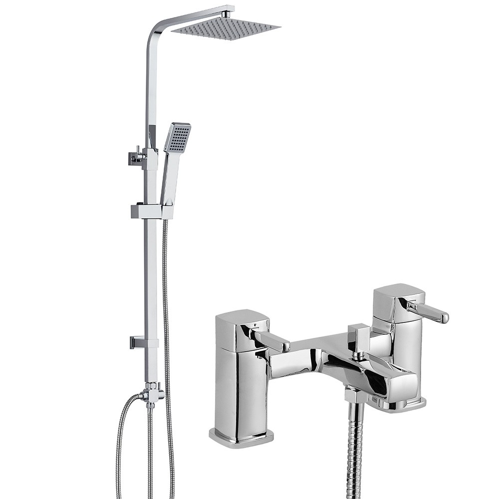 Hampton Chrome Deck Mounted Bath Shower Mixer Tap & Square 3 Way Telescopic Rigid Riser Shower Rail Kit