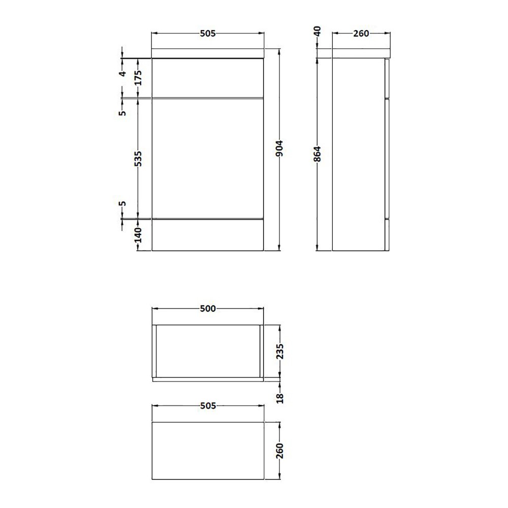 • WIDTH: 505 mm