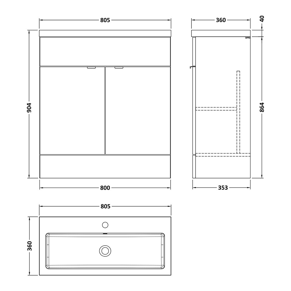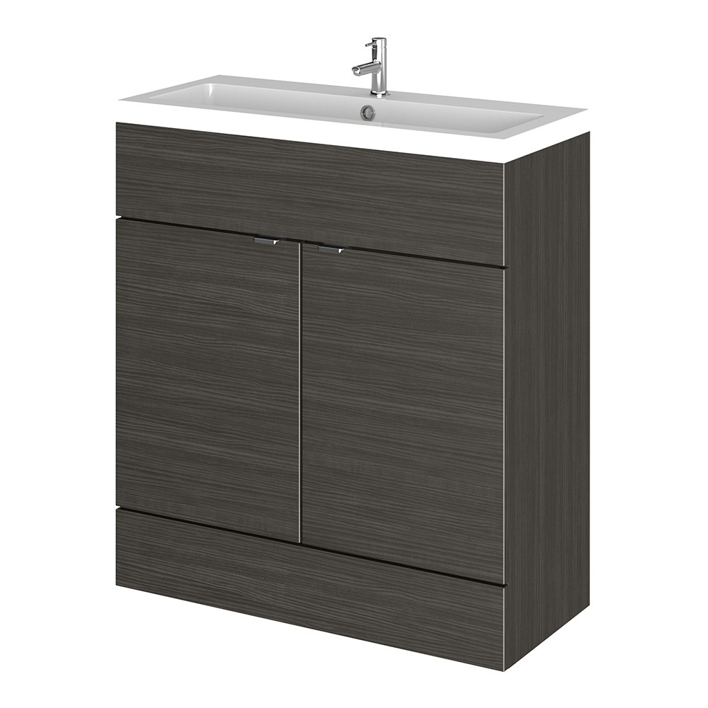 Hudson Reed Fusion 800mm Floorstanding 2-Door Vanity Unit & Basin 1TH - Charcoal Black Woodgrain