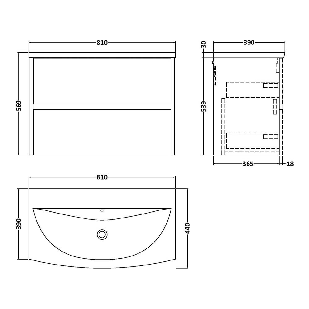 Hudson Reed Havana 800mm Wall Hung 2-Drawer Vanity Unit & Curved Basin 1TH - Matt Coastal Grey