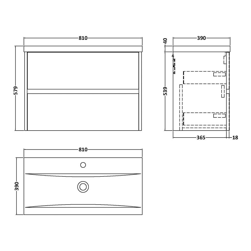 Hudson Reed Havana 800mm Wall Hung 2-Drawer Vanity Unit & Mid Edge Basin 1TH - Matt Coastal Grey