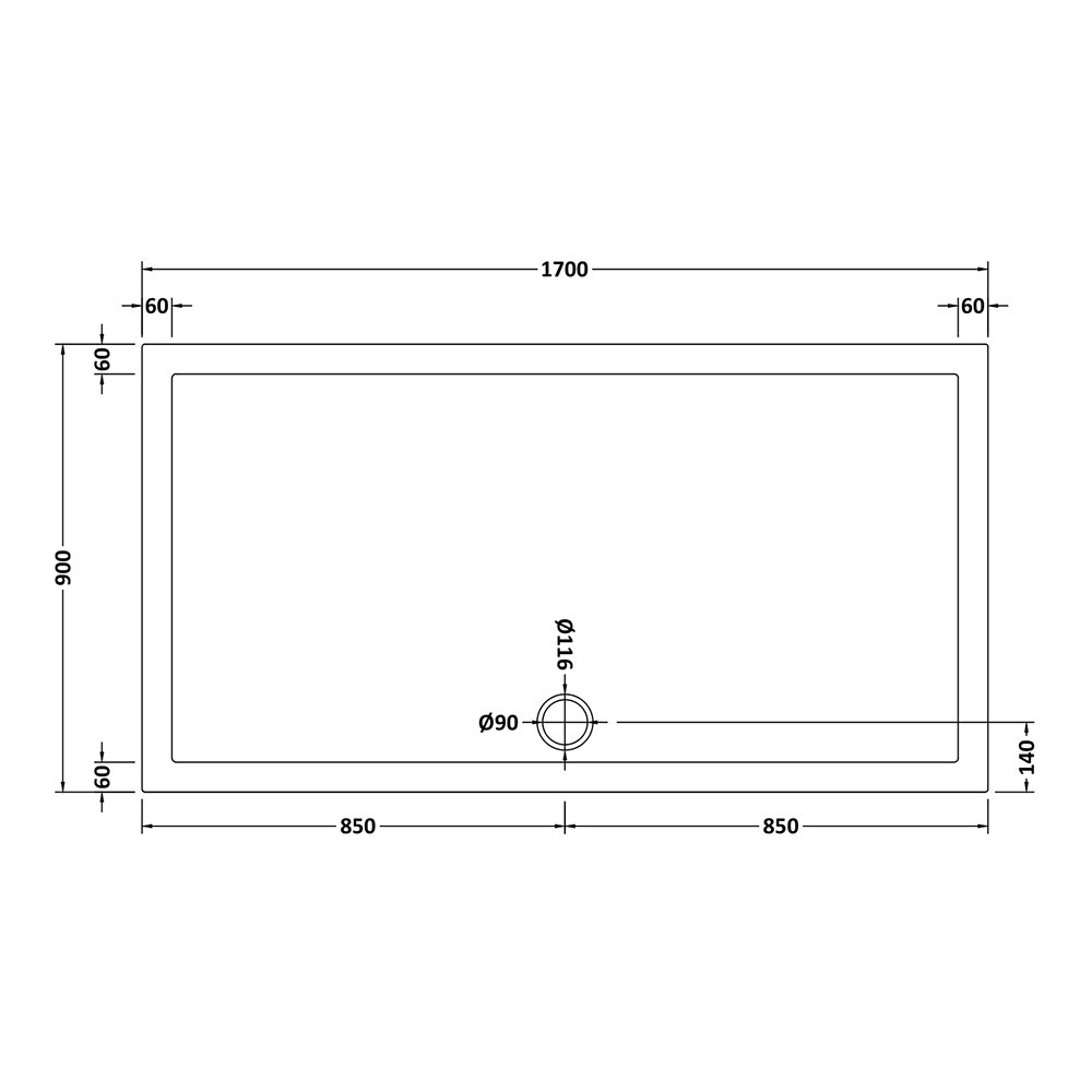 Hudson Reed Rectangular Shower Tray 1700mm x 900mm x 40mm - Gloss White