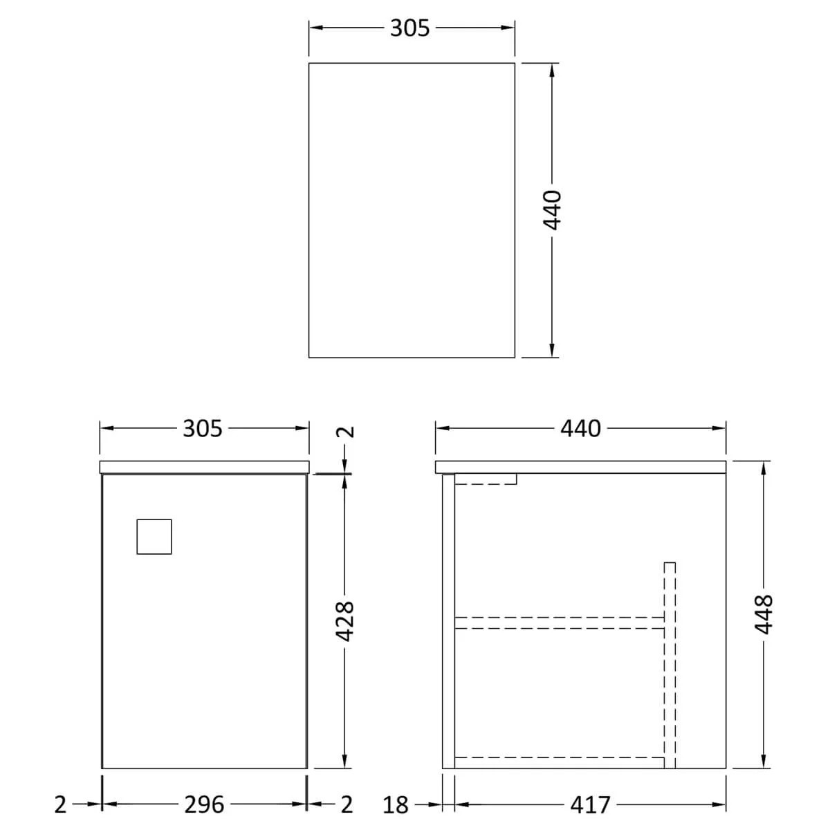 • Cabinet thickness: 18 mm