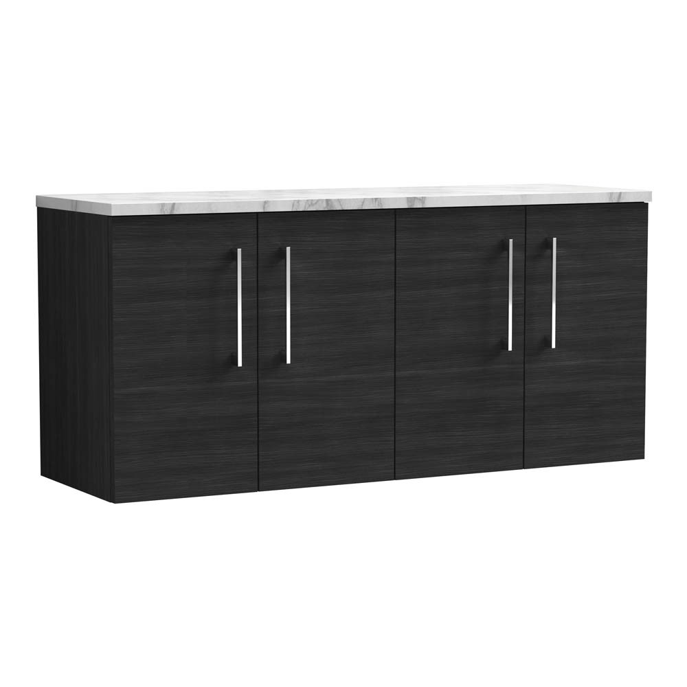 Nuie Arno 1200mm Wall Hung 4-Door Vanity Unit & Matt Carrera Marble Laminate Worktop - Charcoal Black Woodgrain