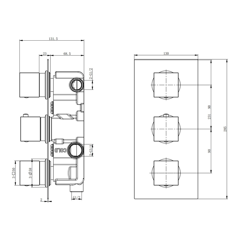 • Concealed Valve: CV2BB-T3WAY