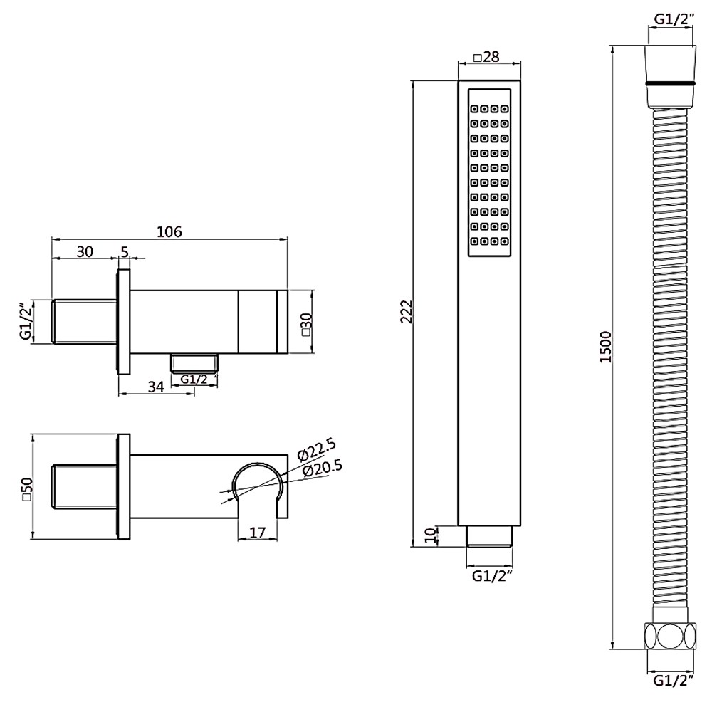 • Shower handset type: Brass