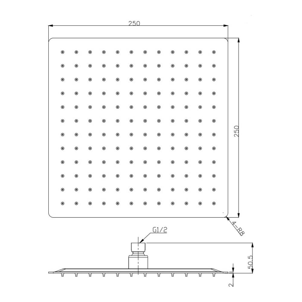 • Head dimensions: 250 x 250mm