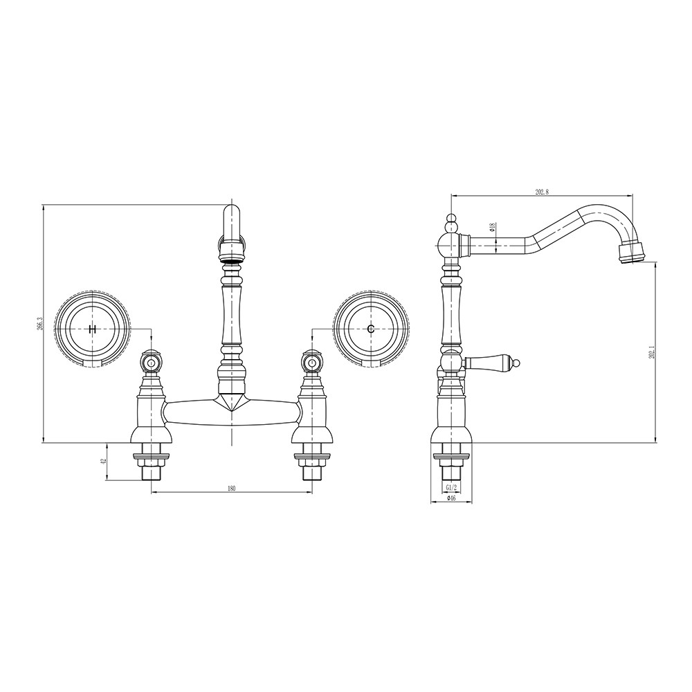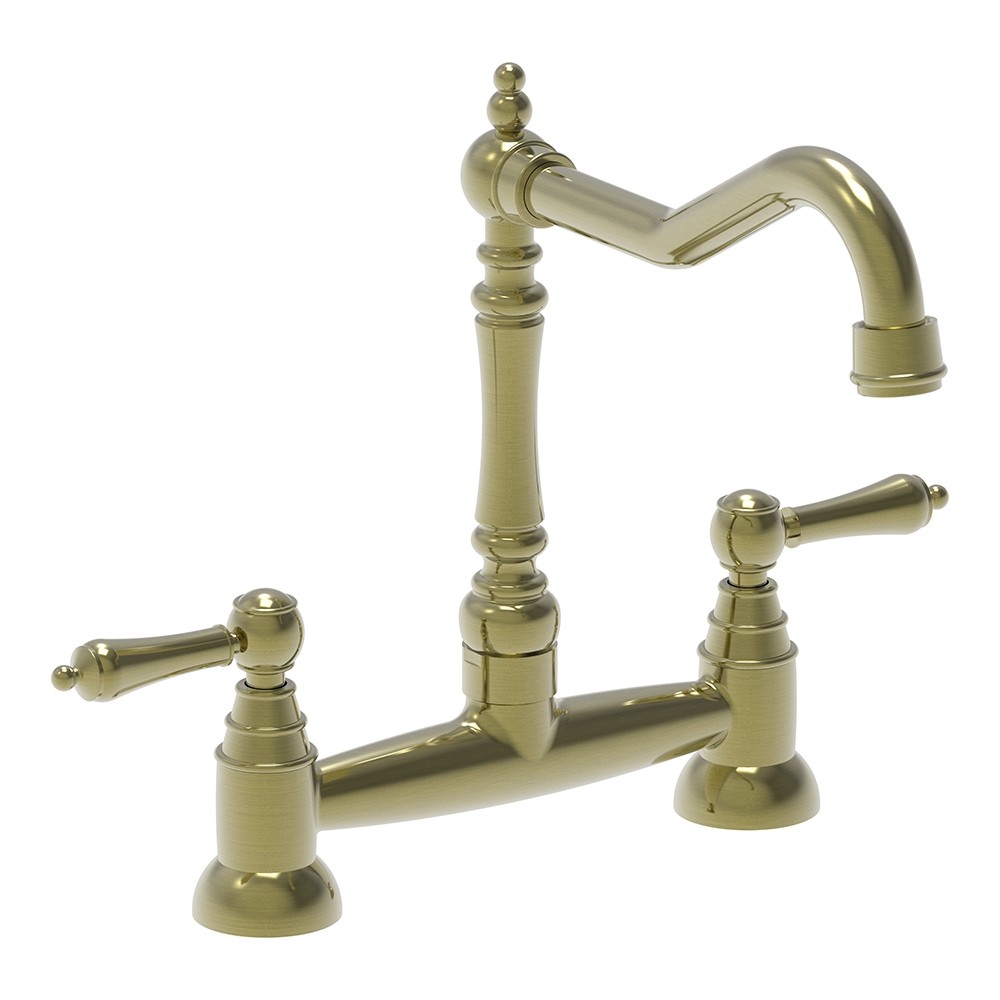 Victoria Antique Brass Traditional Dual Lever Bridge Kitchen Mixer Tap